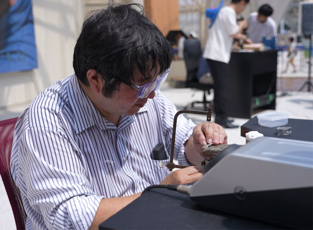 大阪府中小企業団体中央会主催、大阪ジュエリー工芸協同組合の「大阪府優秀技能者表彰・なにわの名工」として、池田謙一がジュエリーパフォーマンス「透かし技法」を披露しました。